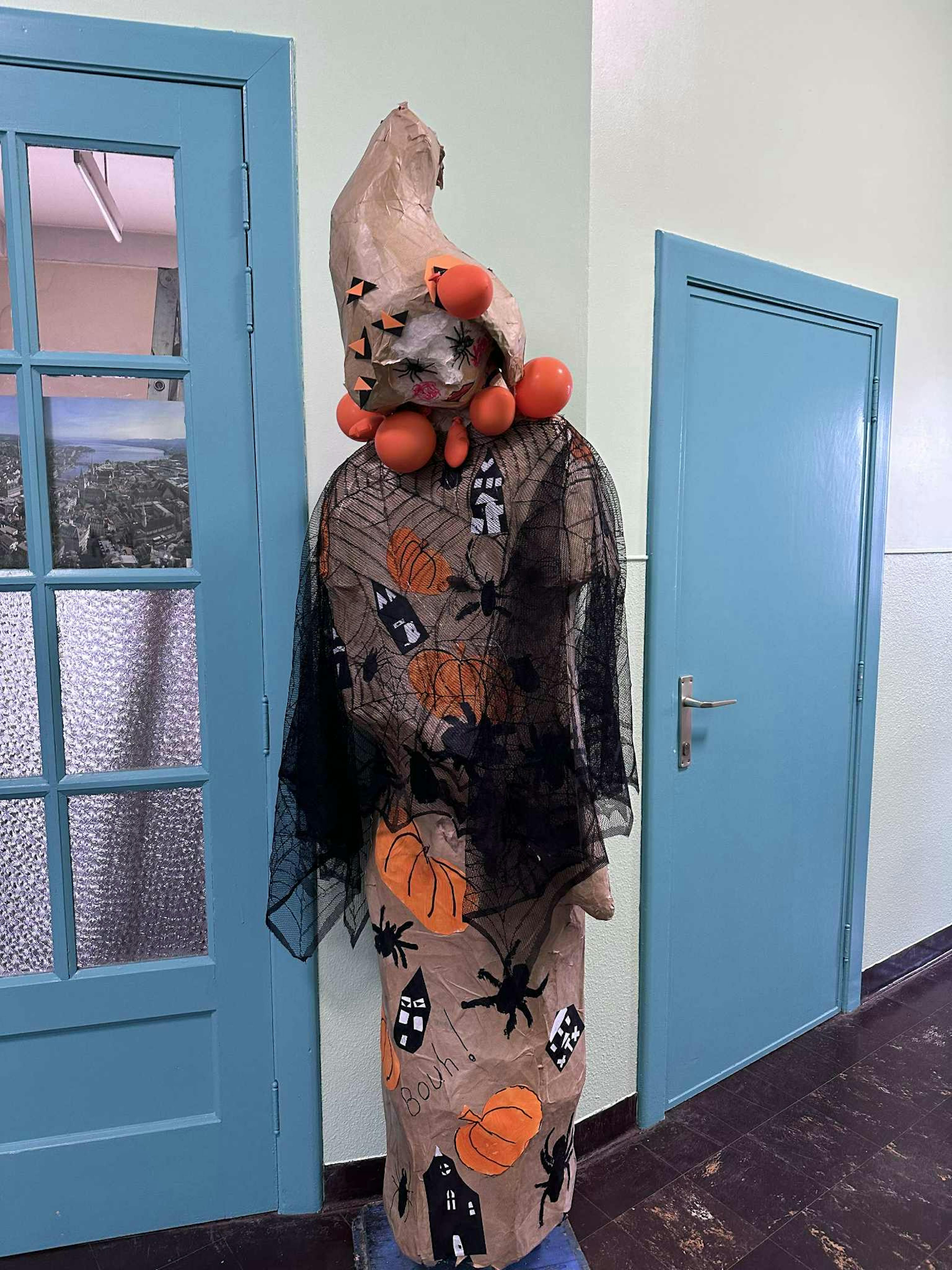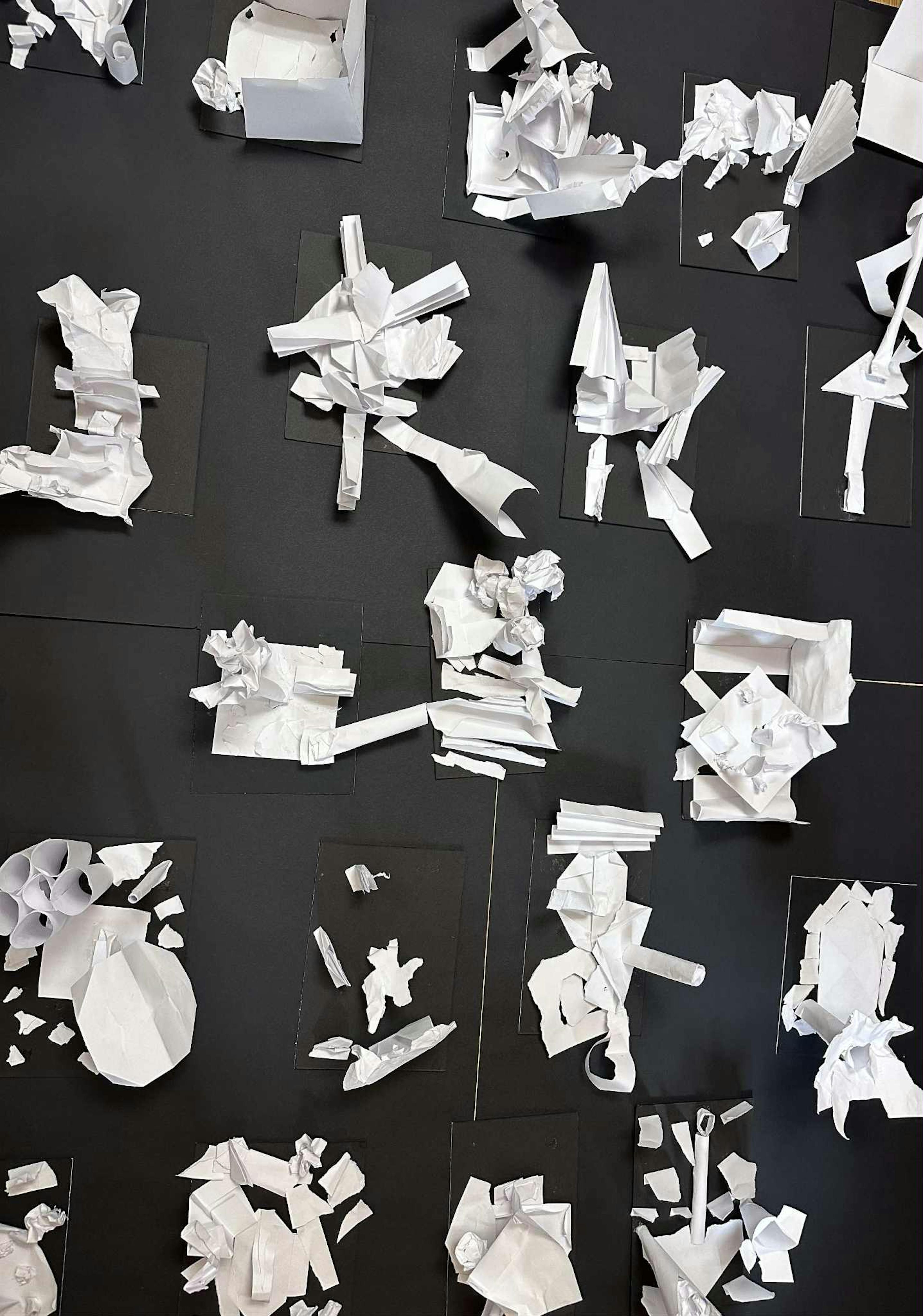 Nous avons observé, imité, inventé, plié, découpé, collé, assemblé, tissé, relooké notre grande sculpture « Marie Boug’Pom », dessiné au fusain, peint, réalisé un stop motion, … et pris beaucoup de plaisir tous ensemble.