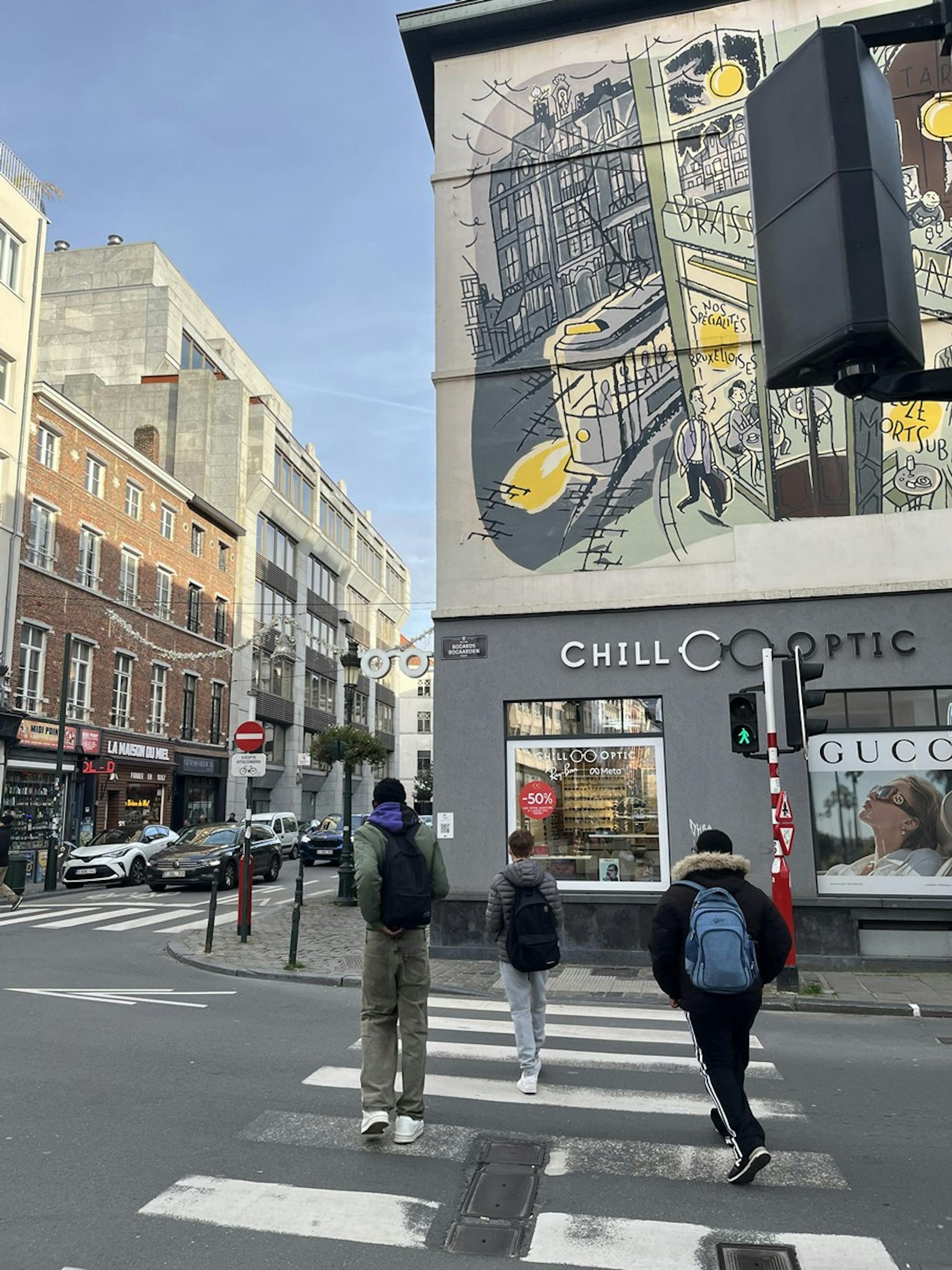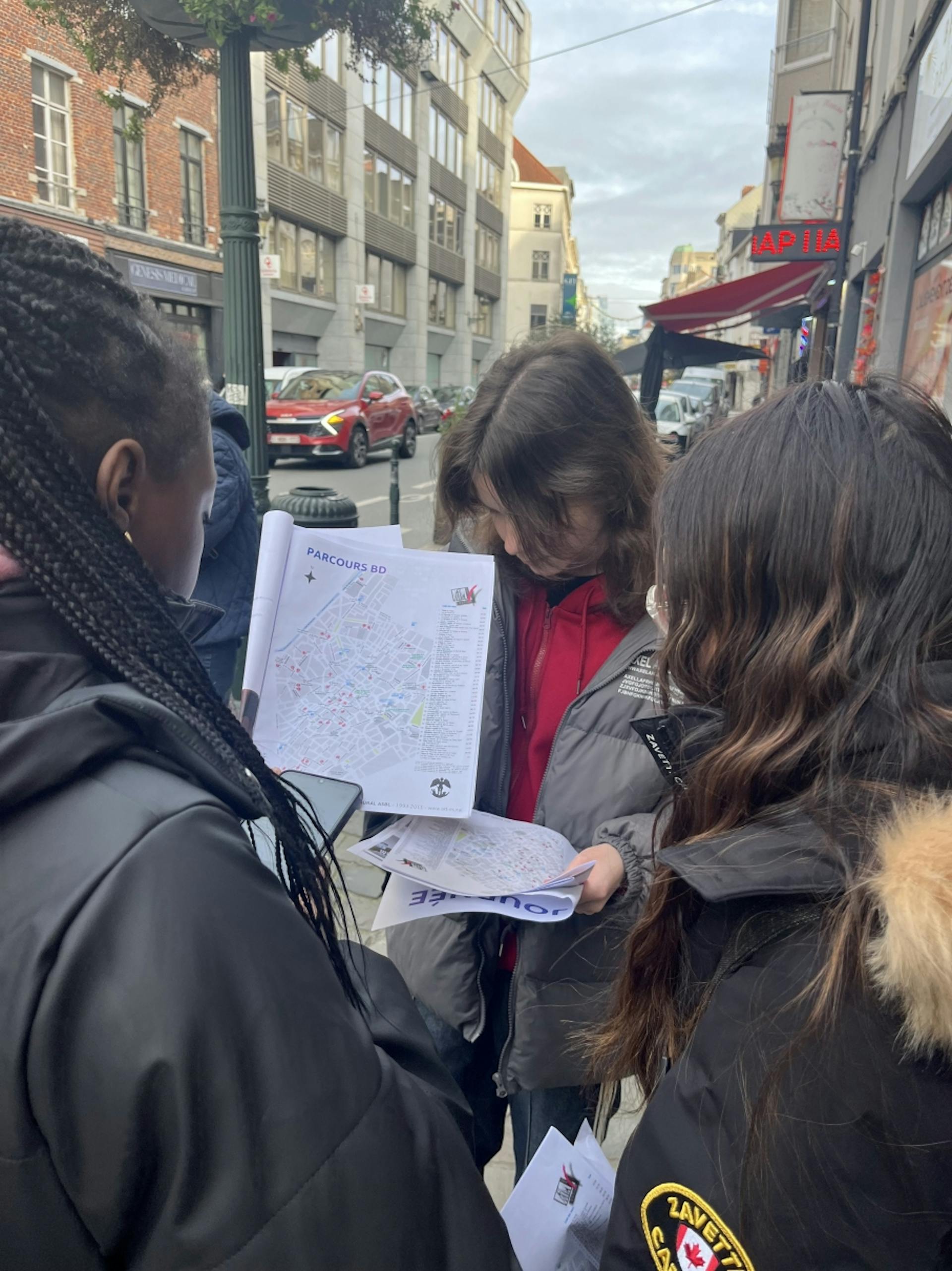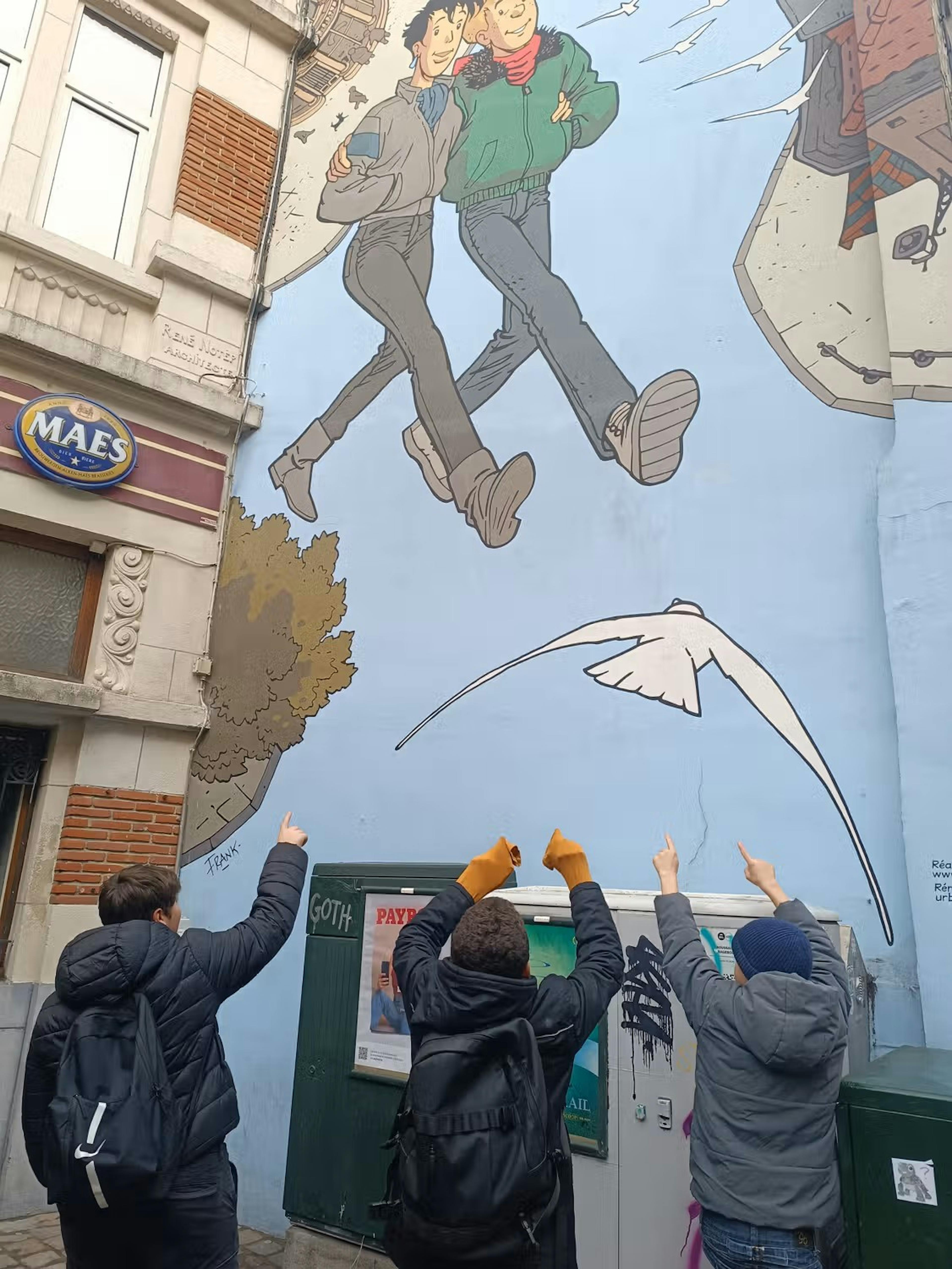 Dès notre arrivée, nous avons commencé par un défi “parcours BD” dans les rues de la ville. Répartis en petits groupes, nous devions retrouver plusieurs fresques et observer des détails cachés sur les murs. Ce rallye nous a permis de découvrir Bruxelles autrement, en levant les yeux, en coopérant et en nous amusant.