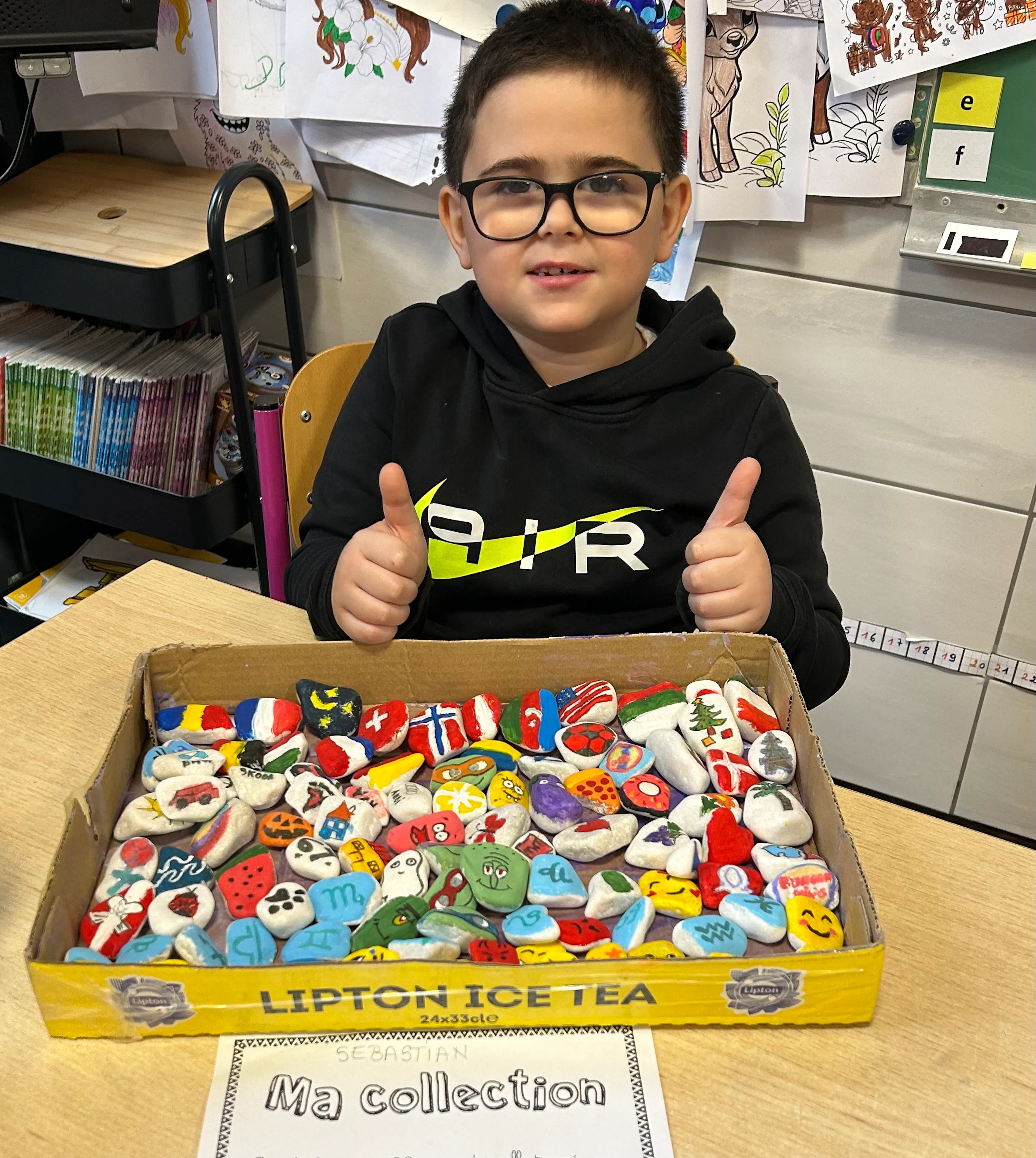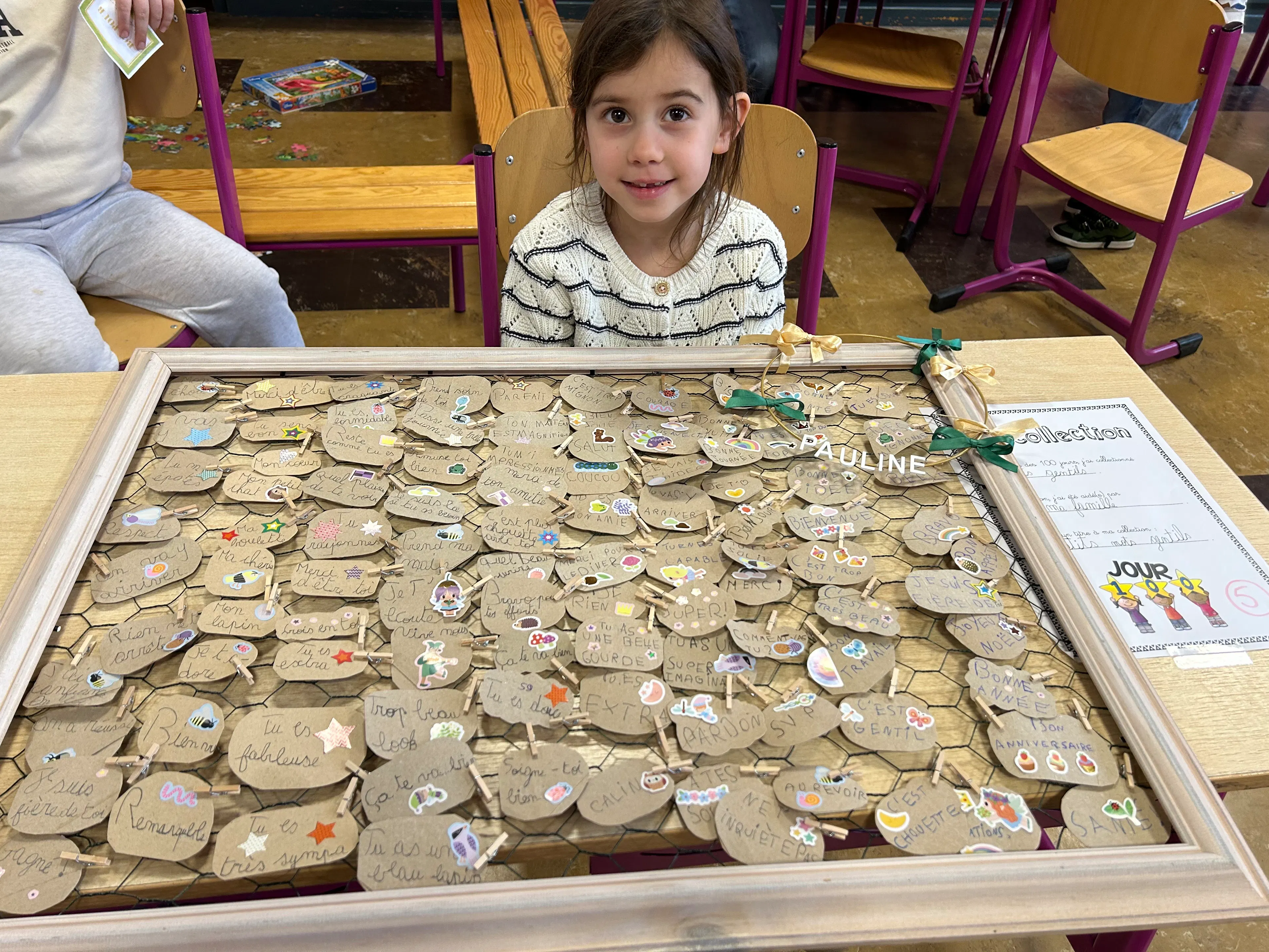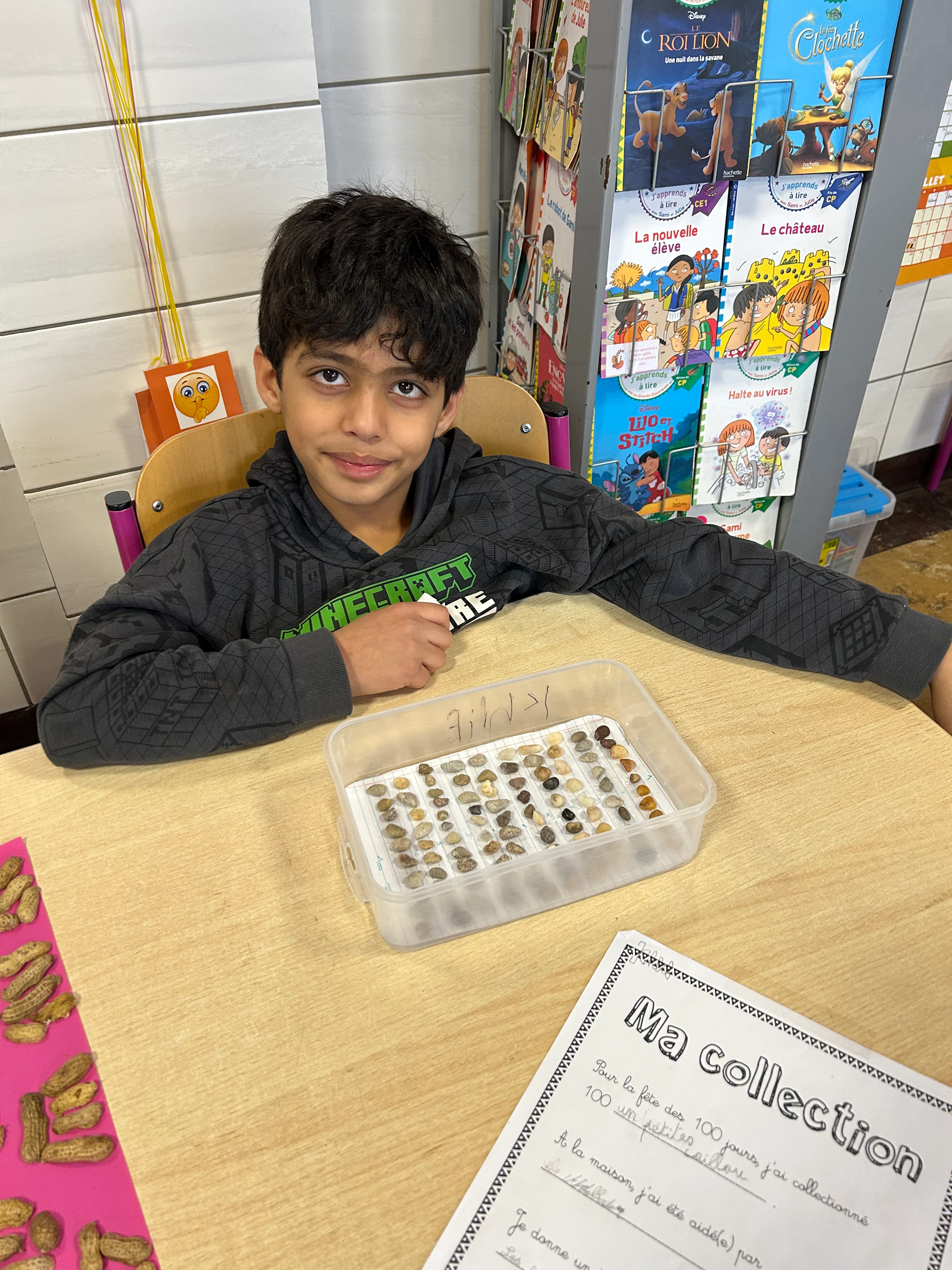 À travers des dessins, des collages, des assemblages d’objets et des idées originales, chaque enfant a exprimé sa vision du nombre 100. Bonhommes, cailloux, perles, mots, dessins répétés ou petits objets du quotidien ont pris vie dans des compositions uniques, témoignant de l’imagination débordante et de l’enthousiasme des jeunes artistes.