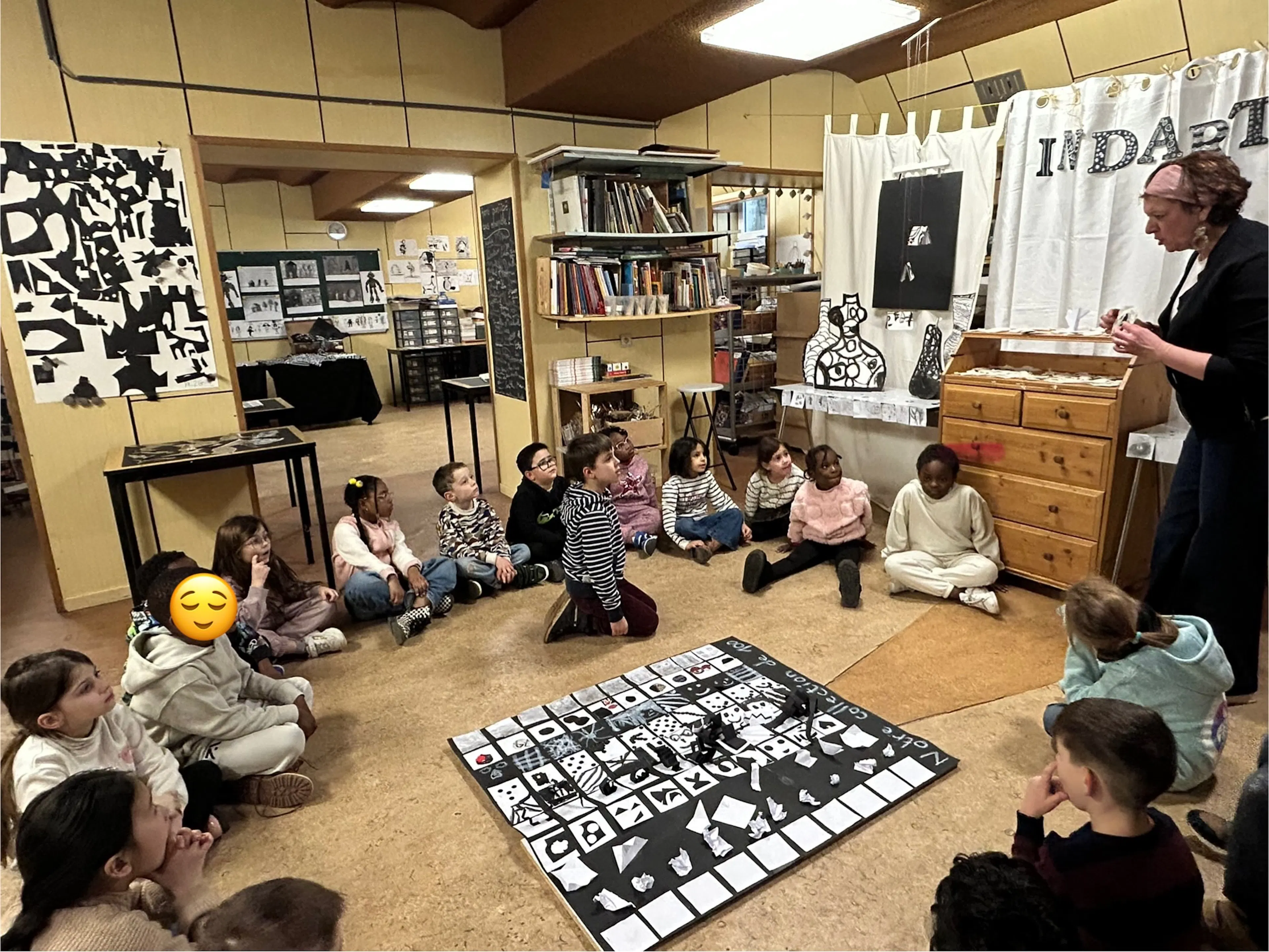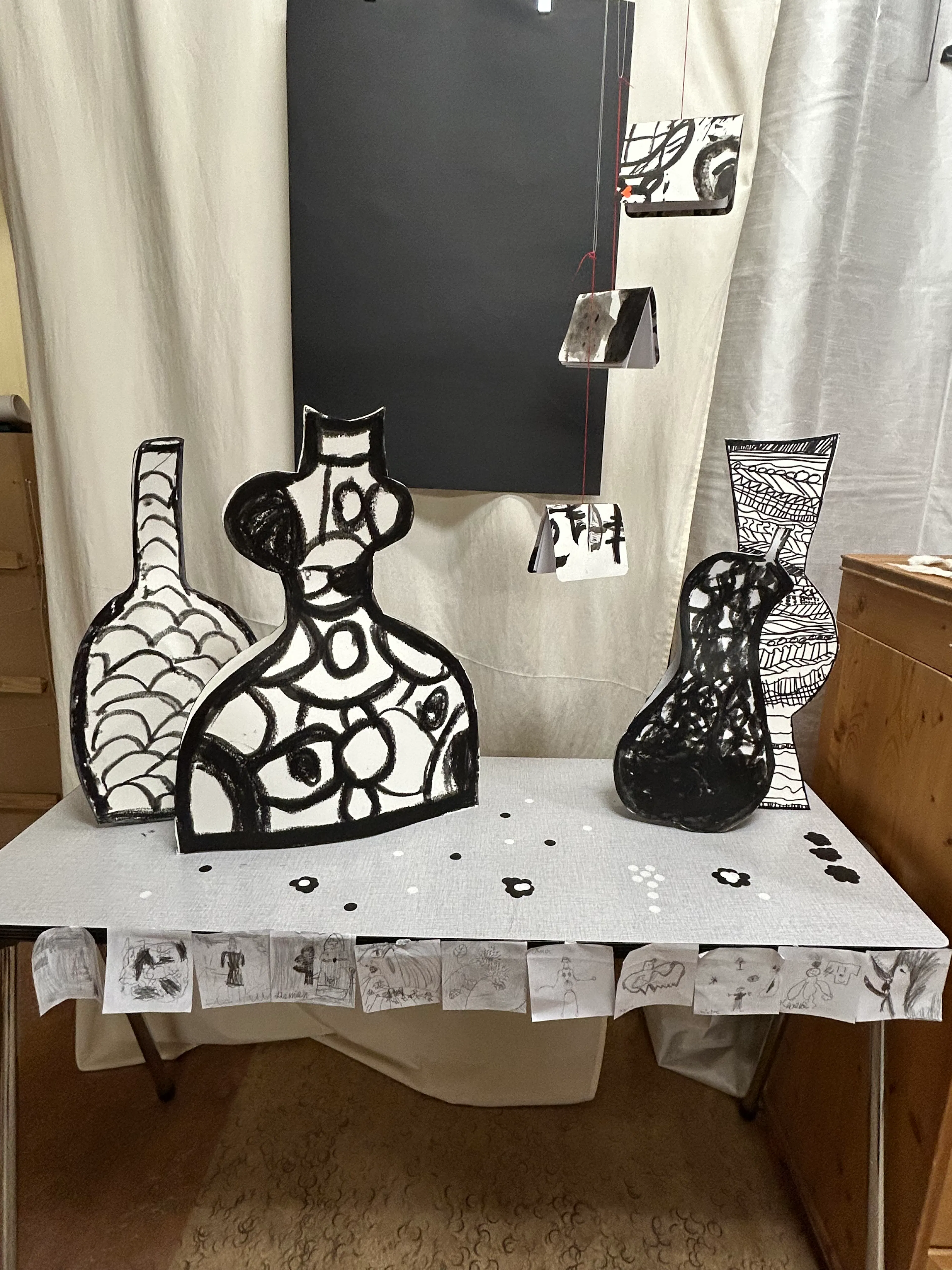 Parallèlement aux collections, Mme Anne a également présenté une exposition intitulée « En noir et blanc », réalisée avec les classes de P1, P2 et P3. Les élèves ont exploré les contrastes, les formes et les textures à travers des œuvres élégantes et expressives, mettant en valeur la simplicité et la force du noir et du blanc. Cette exposition a rencontré un grand succès et a suscité beaucoup d’admiration auprès des visiteurs.