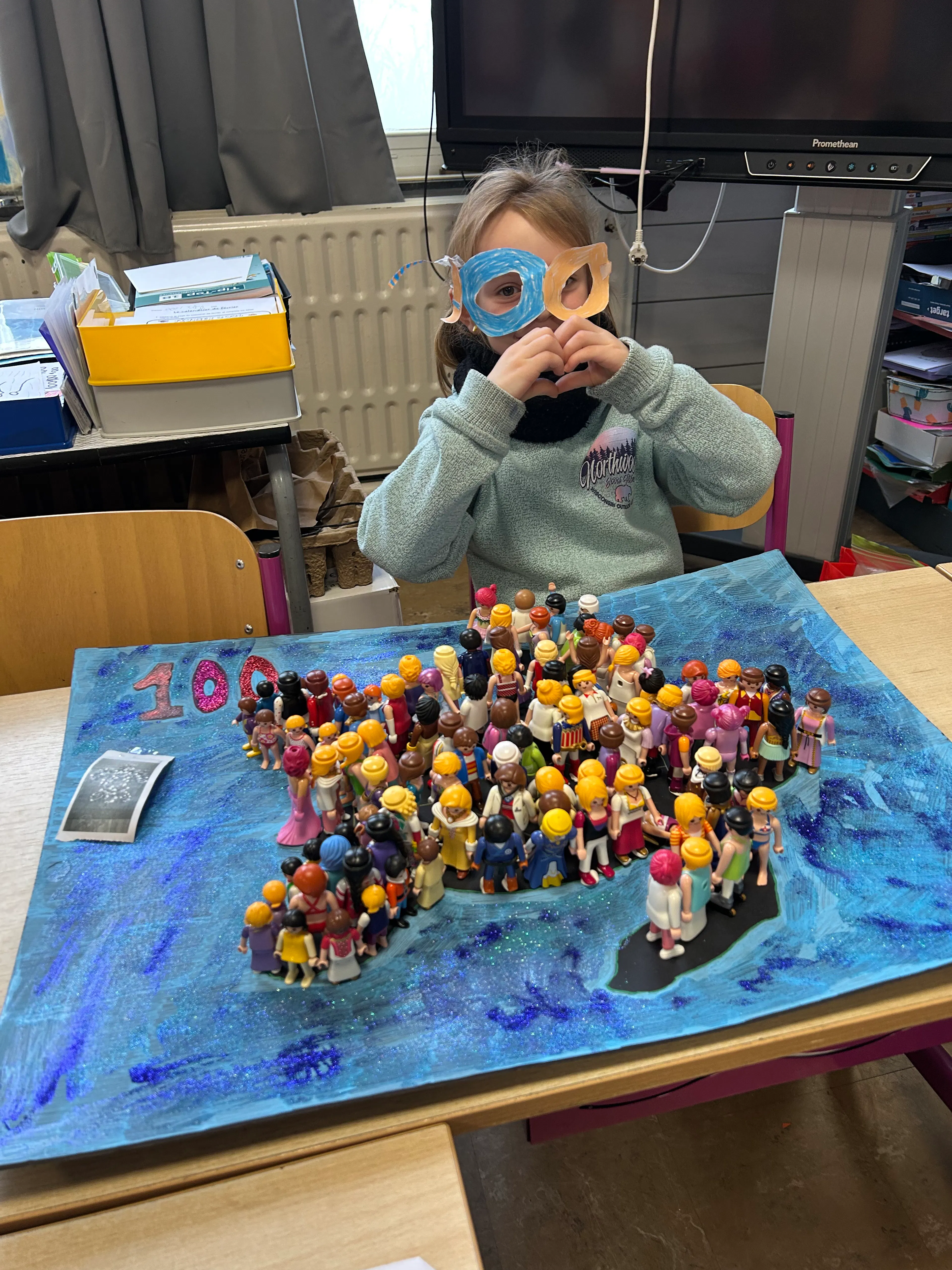 Ce lundi 9 février, à l’occasion du 100ème jour d’école, nous avons eu le plaisir d’accueillir une exposition pas comme les autres : une collection de 100 créations imaginées et réalisées par les élèves des classes de première et deuxième primaire. Ce projet pédagogique a permis aux enfants de découvrir le nombre 100 de manière ludique, concrète et créative.